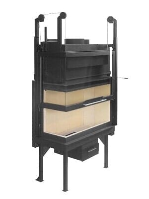 - dvouplášťová ocelová krbová vložka se šamotovým ohništěm
